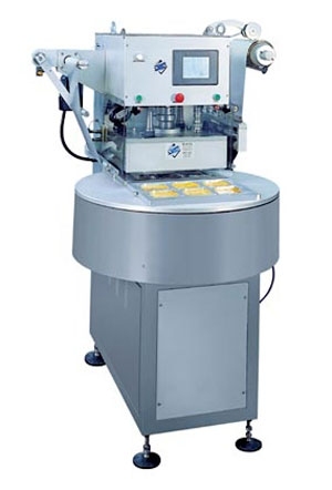SRA 2SM е ротационна машина с една въртящи се платформа и два зареждащи се работни плота. Докато единият работен плот е под матрицата, където се извършва цикъла: вакуум, газ, термозаваряване - се отстраняват вече направените опаковки от предишния цикъл и се зареждат нови. Контролният панел е интуитивен и е на 6 езика, включително и български.